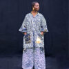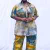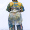 Hand-died batik, handmade brass buttons. (hand brushed, cotton and organza)