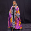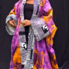 The Ayo Kimono is a luminous blend of artisan craft and wearable elegance. Hand-dyed in batik with rich pattern and depth, it features an African-print trim that adds contrast and visual interest. Its open kimono silhouette drapes gracefully, offering both ease and impact.