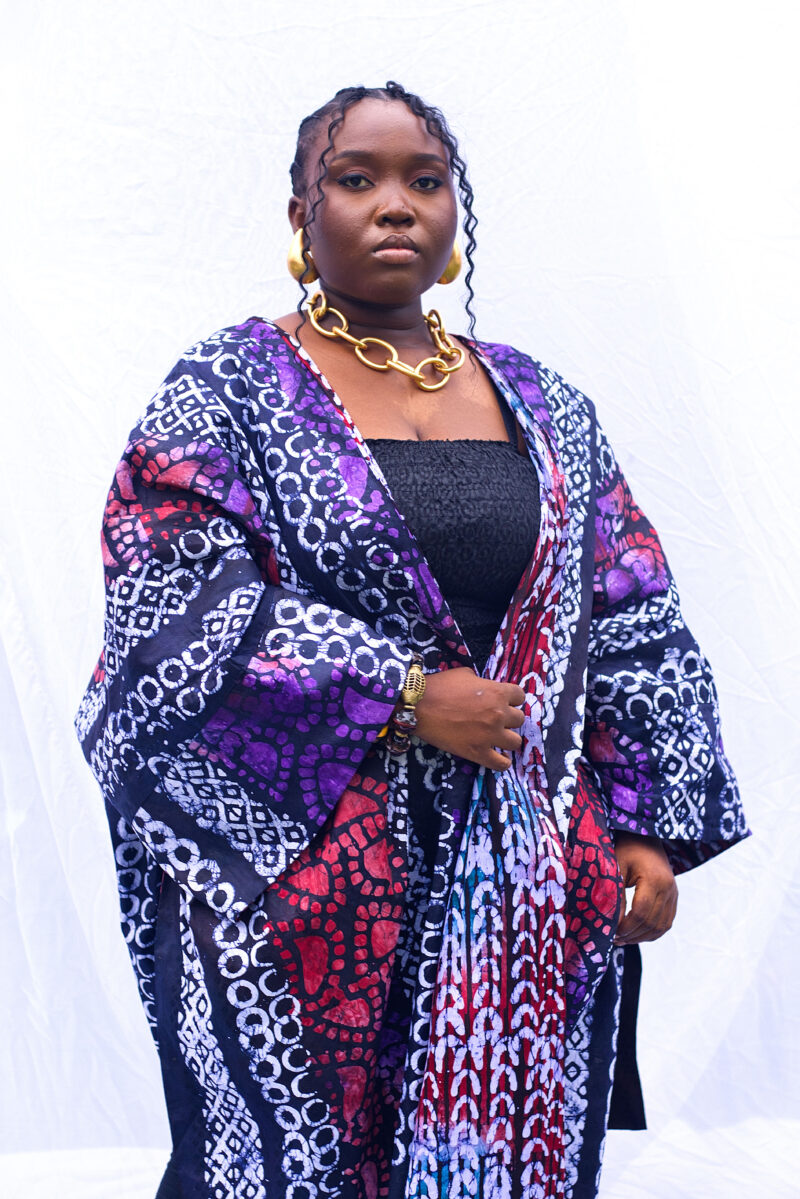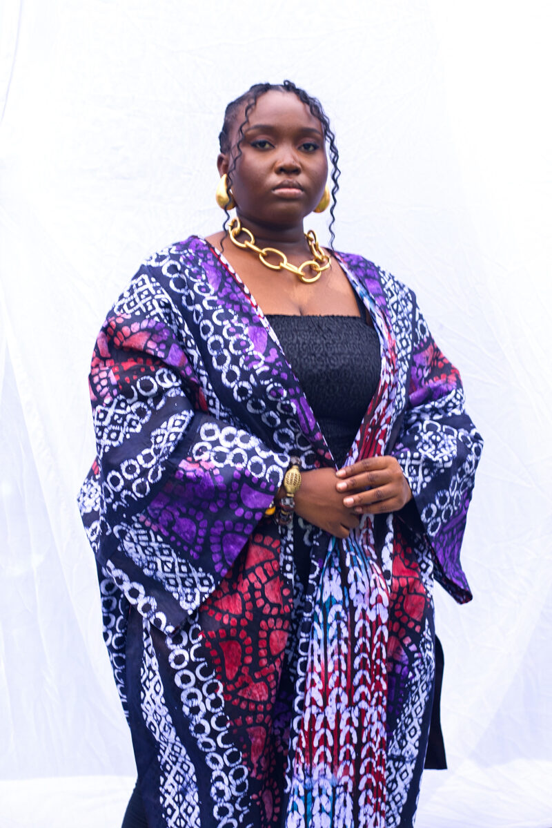 The Sika Kimono is an elegant fusion of artistry and ease. Hand-dyed using batik techniques, its fabric tells a story in every shade and brushstroke. The kimono’s open, flowing silhouette drapes gracefully over the body, allowing movement and presence without constraint.