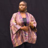 Poly Dress with Hand-Died Batik Trim. Handmade brass ornament