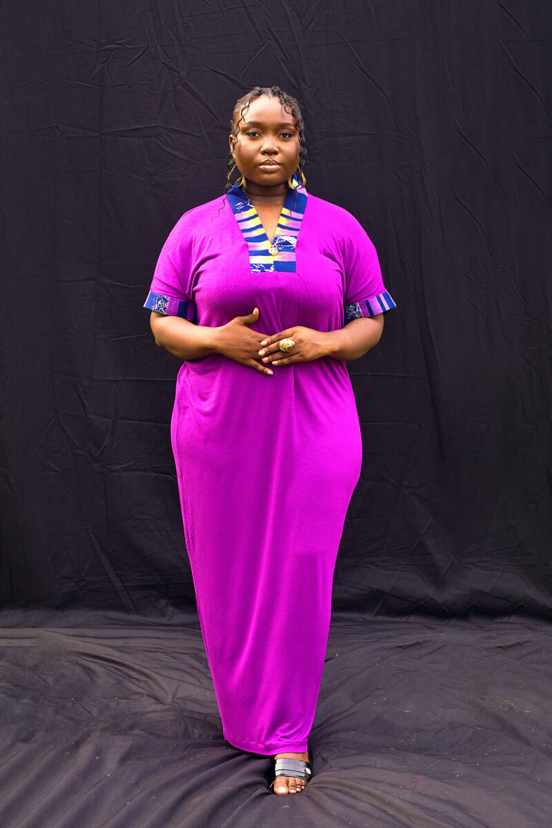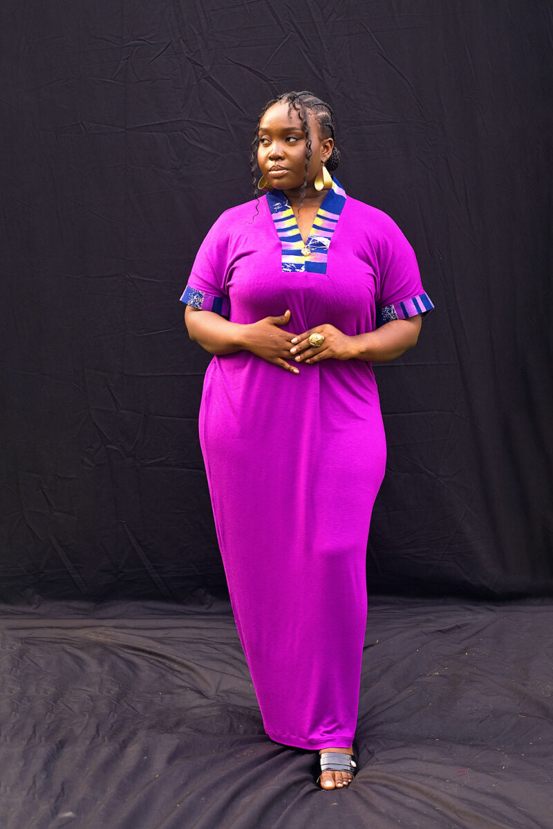 The Tari Poly Dress is a refined blend of elegance and artisan flair. Made from high-quality poly fabric, it is accented with hand-dyed batik trim that adds cultural texture and visual movement. A handmade brass ornament at the neckline lends a subtle touch of sophistication and individuality.