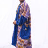 Hand-died Batik and wool blend, Kimono coat with hand-carved brass ornaments